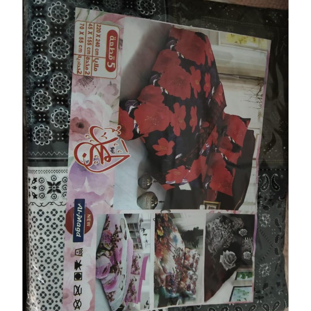 Al Majd 5-Piece Multicolor Bedding Set – Gray, Olive & White, 220×240 cm with Cushions & Pillowcases