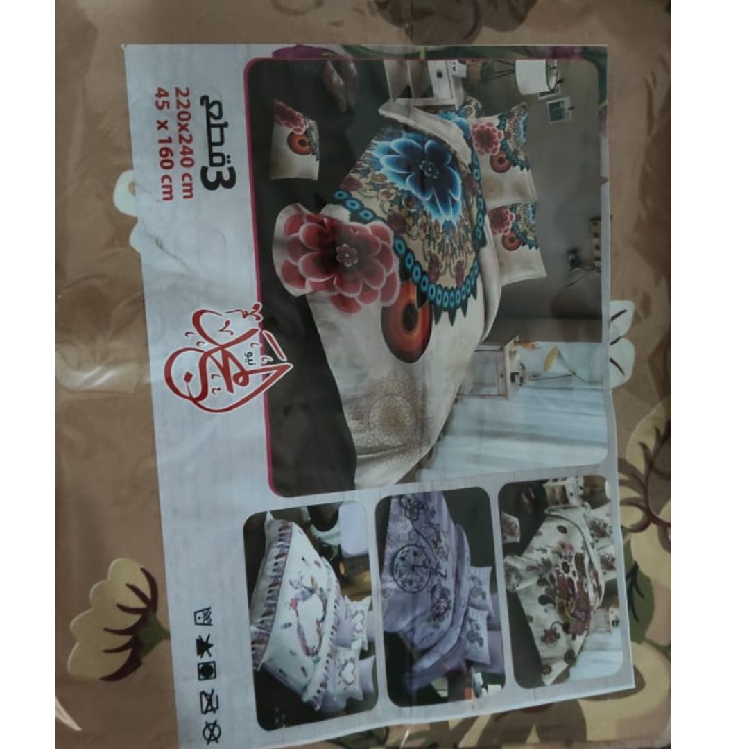 Floral 3-Piece Bed Sheet Set – 220 × 240 cm + Cushions 45 × 160 cm – Beige color-,EL magd