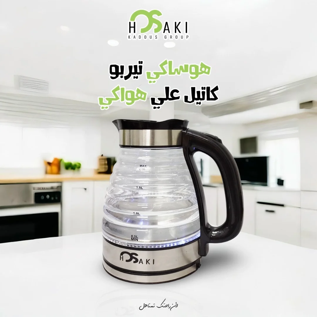 Hosaki, Glass Electric Kettle – 2L, 1500W, LED Indicator & Stainless Steel Heating Element
